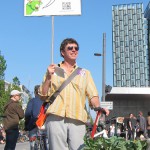 Mit einem Demokratie Wagen war die „Keimzelle“ auf dem Euromayday. Ganz entsprechend des Euromayday-Mottos – Bitte Platz nehmen – wurde für Gärten auf Brachen im Allgemeinen demonstriert und für das „Grünareal“, das Platz auf dem Areal der Alten Rindermarkthalle fordert, um einen Planungsgarten mit Gemüseanbau zu territorialisieren.